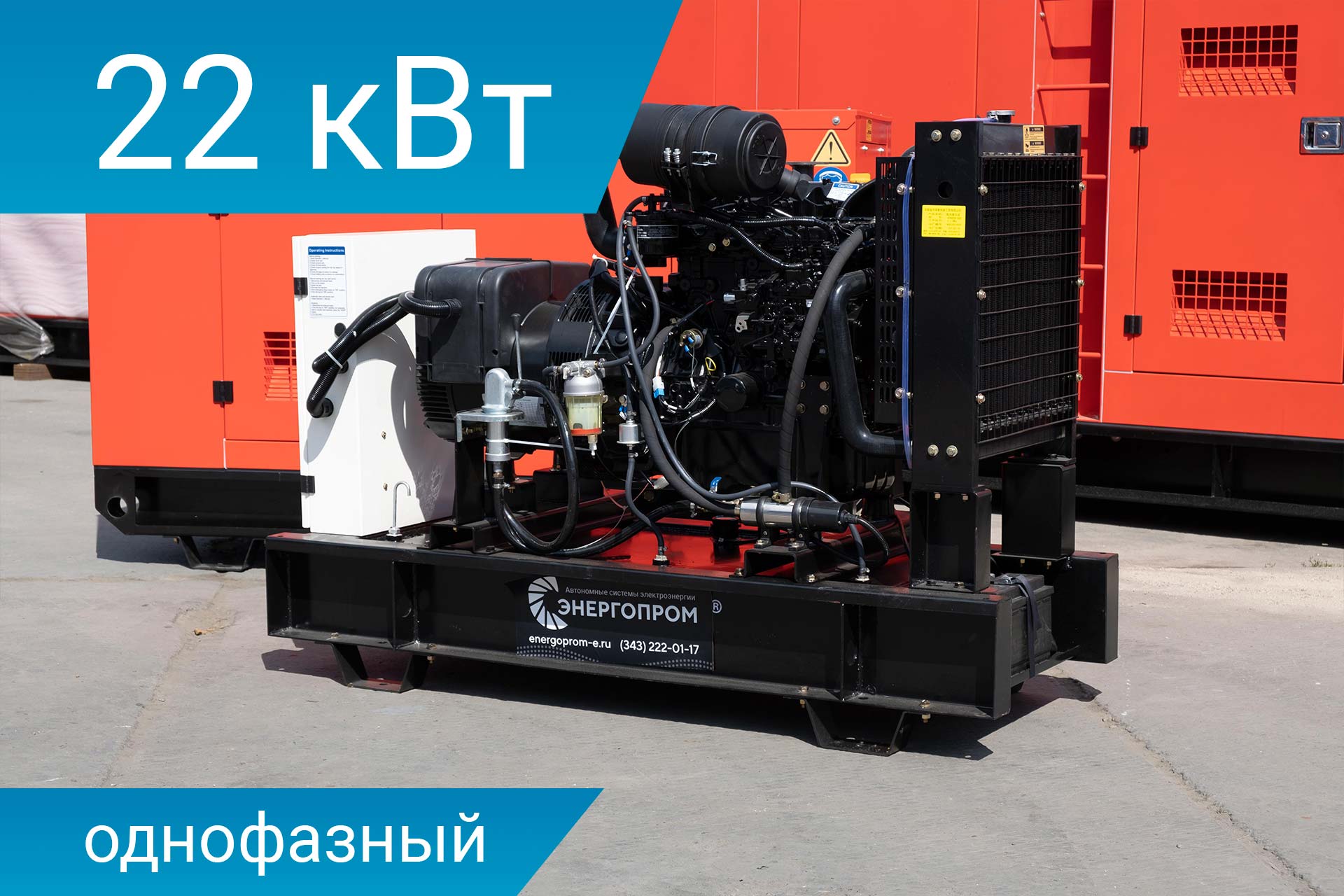 Дизельный генератор на 22 кВт с двигателем Yanmar в открытом исполнении. Панель управления на базе контроллера Deep Sea 6120. Автомат защиты генератора, устройство подзарядки АКБ и электрический подогрев охлаждающей жидкости (питание 220В). Электронный датчик уровня топлива, промышленный глушитель, аккумуляторная батарея.